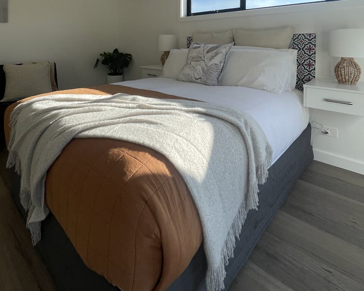 Built in 2024, this unit consists of a Queen Bed, and also a 'click clack' sofa (on request/booking this can be made into a bed with extra mattress support, and is suitable for 1 Adult/Teenager, or 2 small children)