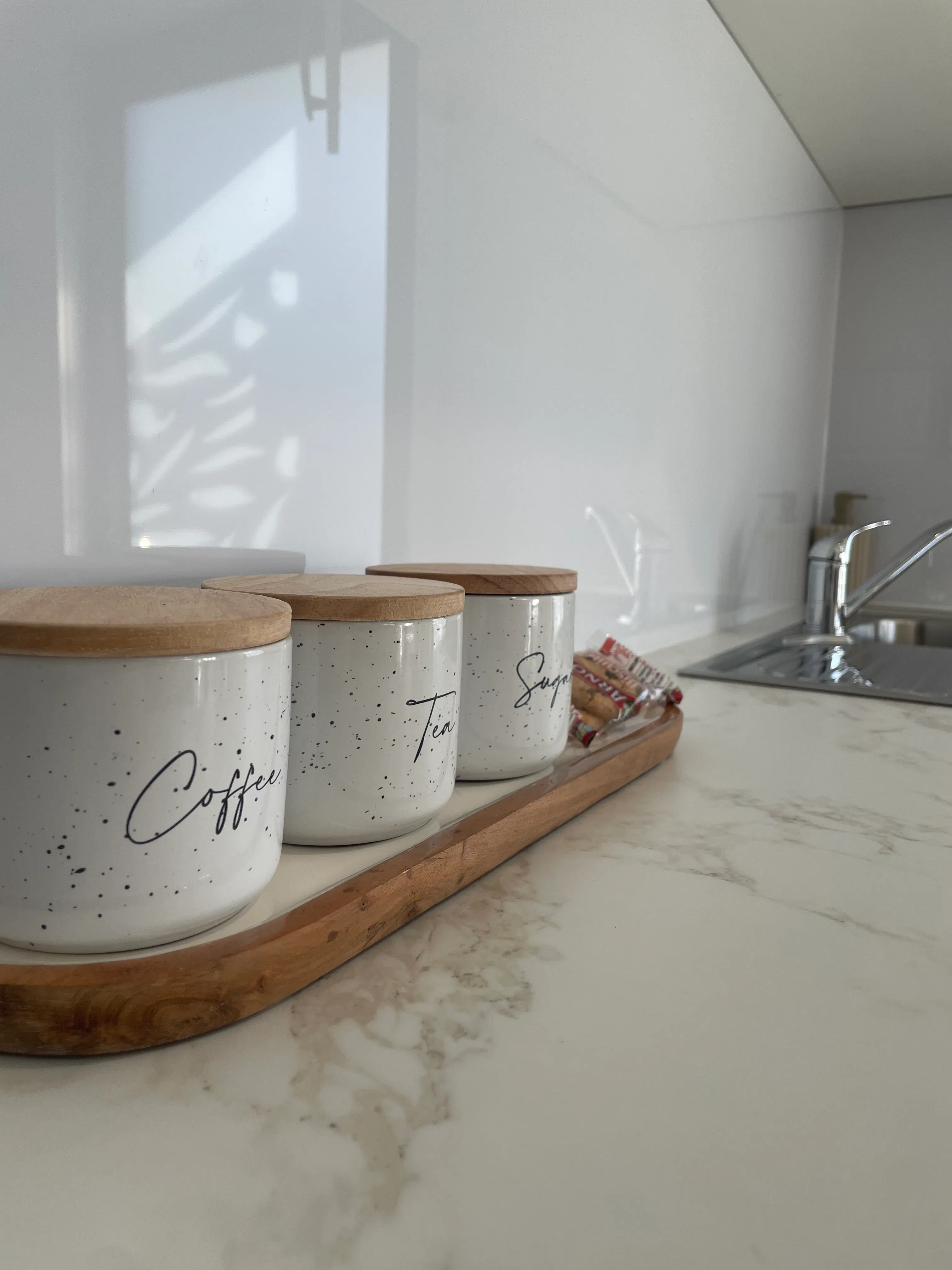 Coffee, Sugar, a selection of Teas, Biscuits/Sweets and Fresh Milk is supplied.